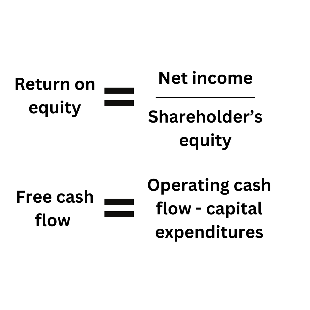 ROE gives an insight into how efficient a company is in generating profit. Free cash flow tells us how much cash a business generates after deducting operating and capital expenditures. Here is how to calculate them: