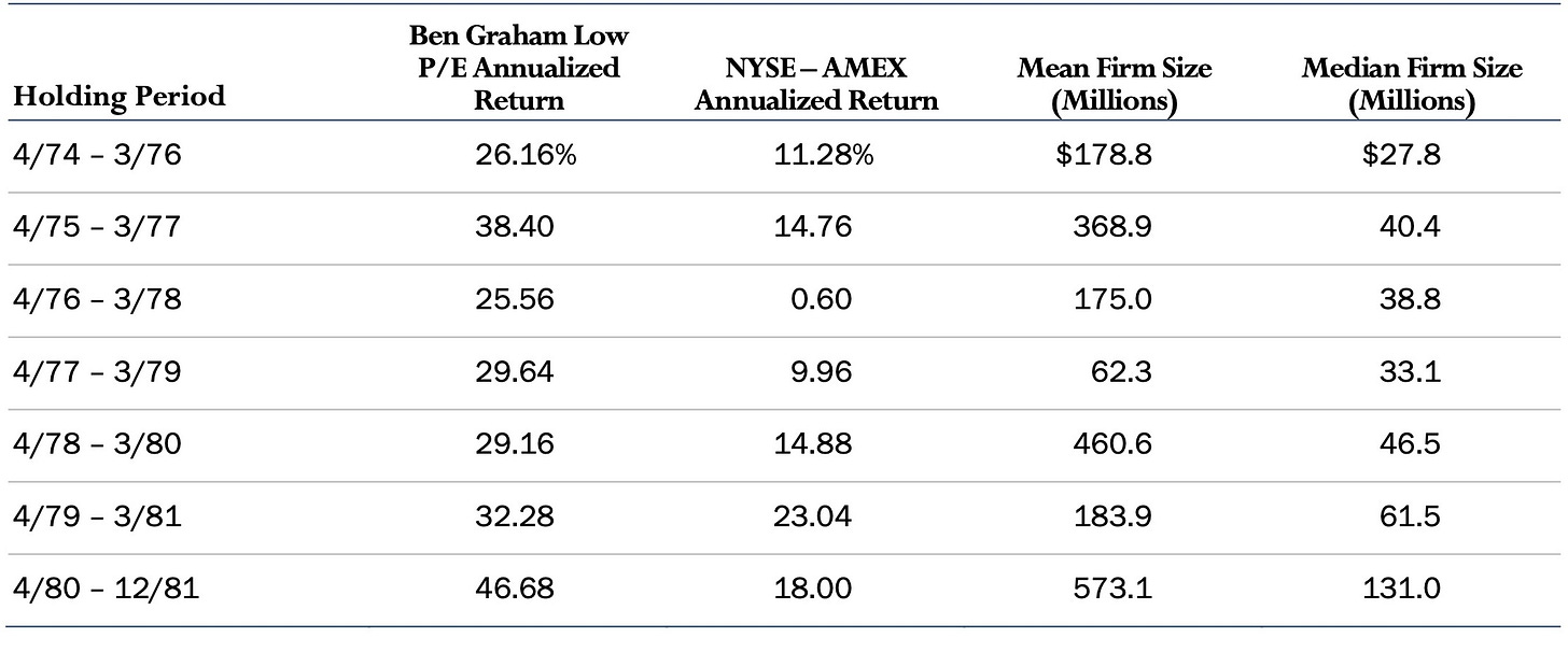 Henry Oppenheimer, of State University of New York at Binghamton, analysed New York and AMEX listed stocks that met Grahams framework from 1974 to 1980. Over the period, stocks that met Graham’s criteria achieved an average annual return of 38%, compared to 14% for the NYSE-AMEX index.